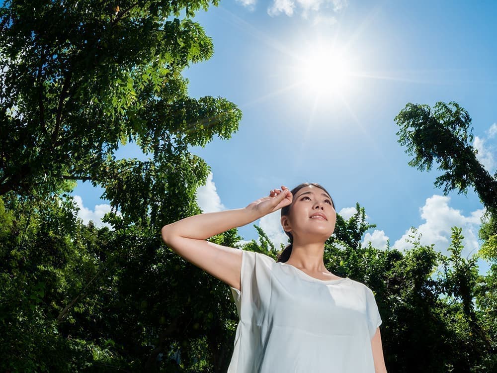 最も太陽のエネルギーを受ける季節の外因「暑邪」は、上へ上へと向かって燃え上がる炎のような性質をもち、これにおかされると、ほてり・のどの渇き・むかつきといった熱中症や日射病のような症状が起こります。東洋医学では「心」と「小腸」が「暑邪」に弱いとされ、「心」は心臓や血液のような循環器官だけでなく、同じ読みの「神(精神)」をも意味し、動悸・息切れやイライラ不眠のような精神症状も起こすと考えられています。また小腸は消化以外に免疫にも関与するため、小腸の機能低下は、栄養分の消化不良だけでなく、夏風邪や皮膚トラブルの一因となります。